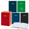 Agenda de tamaño B5 acabada en suave y resistente PU. Diseño página día y marcapáginas de tela. En 2 idiomas: castellano e inglés. Con cubiertas rígidas y posibilidad de caja de presentación.