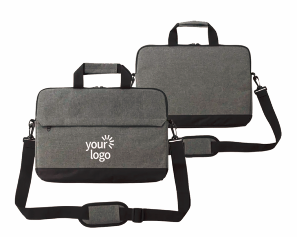 Maletín para portátil (15») de poliéster (600D) y cierre con cremallera. Tiene un compartimento extra con cremallera en la parte delantera. Asas y correa bandolera ajustable.