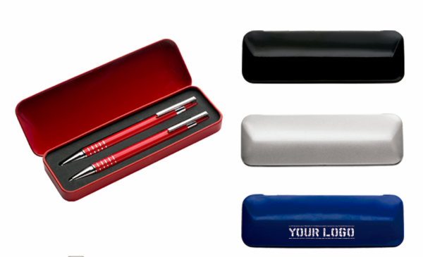 Set de bolígrafo y portaminas de aluminio. Presentado en un estuche de metal.