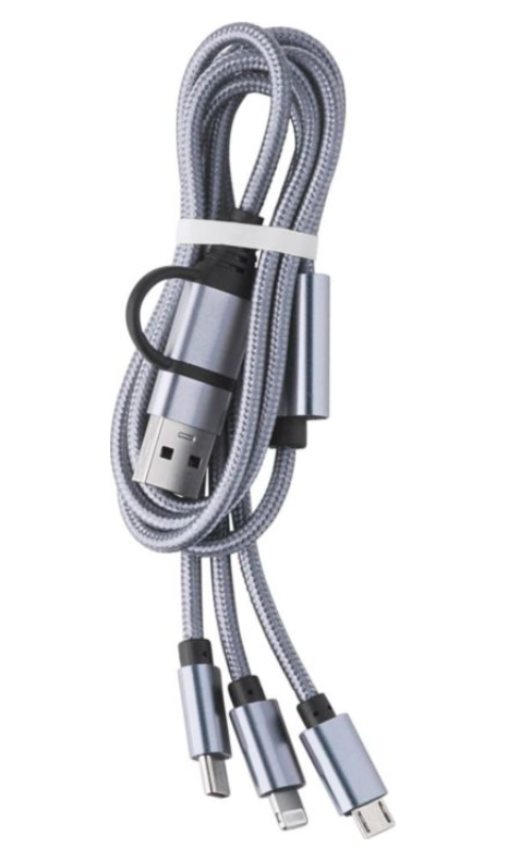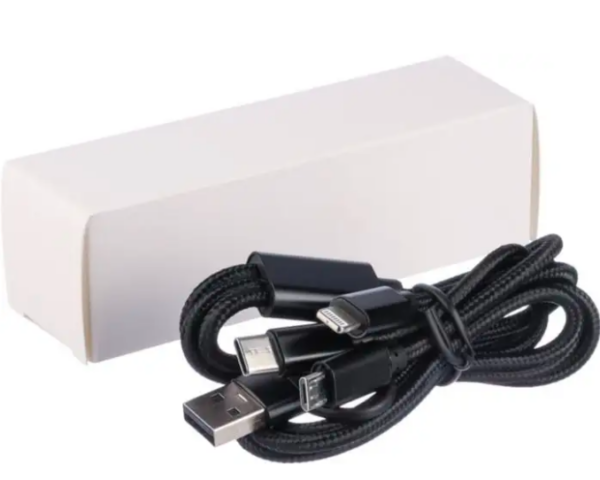 Cable de carga de nailon. USB y USB tipo C. Presentado en una caja de cartón.